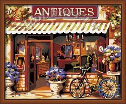 Состав набора: загрунтованный хлопковый холст с контурным рисунком закреплен на деревянном подрамнике размером 40х50см; водно-дисперсионные (акриловые) краски, не требующие смешивания, в герметичных тубах; пустые пластиковые баночки для выдавливания краски; наклейки с номерами для пустых баночек; комплект кистей; чёрно-белая инструкция (повторяет контурный рисунок на холсте); цветная инструкция (репродукция картины); инструкция с рекомендациями по использованию набора; металлические части крепления для подвешивания картины.