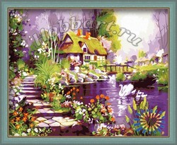 Состав набора: загрунтованный хлопковый холст с контурным рисунком закреплен на деревянном подрамнике размером 40х50см; водно-дисперсионные (акриловые) краски, не требующие смешивания, в герметичных тубах; пустые пластиковые баночки для выдавливания краски; наклейки с номерами для пустых баночек; комплект кистей; чёрно-белая инструкция (повторяет контурный рисунок на холсте); цветная инструкция (репродукция картины); инструкция с рекомендациями по использованию набора; металлические части крепления для подвешивания картины.