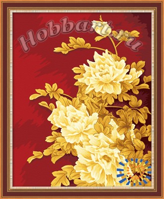 Состав набора: загрунтованный хлопковый холст с контурным рисунком закреплен на деревянном подрамнике размером 40х50см; водно-дисперсионные (акриловые) краски, в том числе золотые и перламутровые краски, не требующие смешивания, в герметичных тубах; пустые пластиковые баночки для выдавливания краски; наклейки с номерами для пустых баночек; комплект кистей; чёрно-белая инструкция (повторяет контурный рисунок на холсте); цветная инструкция (репродукция картины); инструкция с рекомендациями по использованию набора; металлические части крепления для подвешивания картины.