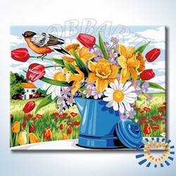 Состав набора: натянутый на подрамник загрунтованный холст с нанесенным цветным контурным рисунком, комплект акриловых красок в герметичных тюбиках, нейлоновые кисти, крепление для подвешивания картины, черно-белый контрольный лист.