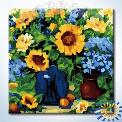 Состав набора: натянутый на подрамник загрунтованный холст с нанесенным цветным контурным рисунком, комплект акриловых красок в герметичных тюбиках, нейлоновые кисти, крепление для подвешивания картины, черно-белый контрольный лист.