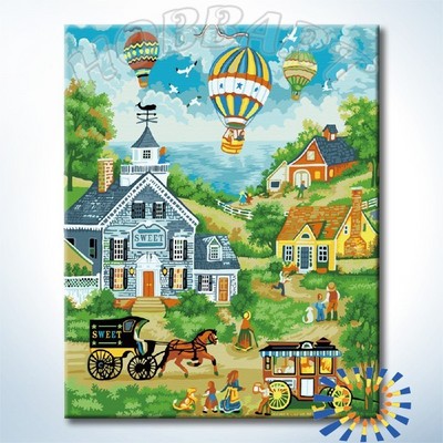 Состав набора: натянутый на подрамник загрунтованный холст с нанесенным цветным контурным рисунком, комплект акриловых красок в герметичных тюбиках, нейлоновые кисти, крепление для подвешивания картины, черно-белый контрольный лист.