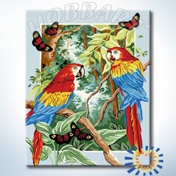 Состав набора: натянутый на подрамник загрунтованный холст с нанесенным цветным контурным рисунком, комплект акриловых красок в герметичных тюбиках, нейлоновые кисти, крепление для подвешивания картины, черно-белый контрольный лист.