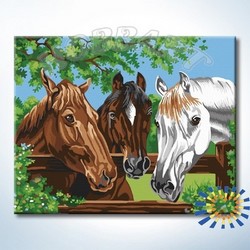Состав набора: натянутый на подрамник загрунтованный холст с нанесенным цветным контурным рисунком, комплект акриловых красок в герметичных тюбиках, нейлоновые кисти, крепление для подвешивания картины, черно-белый контрольный лист.