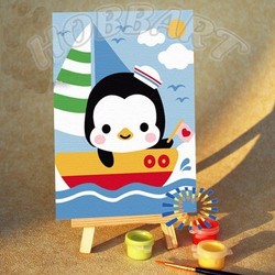 Состав набора: загрунтованный хлопковый холст с контурным рисунком (наклеен на картонную основу) размером 10х15см; водно-дисперсионные (акриловые) краски, не требующие смешивания, в герметичных тубах; одна нейлоновая кисть; деревянный мини-мольберт для готовой работы.