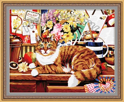 Состав набора: загрунтованный хлопковый холст с контурным рисунком закреплен на деревянном подрамнике размером 40х50см; водно-дисперсионные (акриловые) краски, не требующие смешивания, в герметичных тубах; пустые пластиковые баночки для выдавливания краски; наклейки с номерами для пустых баночек; комплект кистей; чёрно-белая инструкция (повторяет контурный рисунок на холсте); цветная инструкция (репродукция картины); инструкция с рекомендациями по использованию набора; металлические части крепления для подвешивания картины.