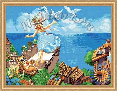 натянутый на подрамник загрунтованный холст с нанесенным контурным рисунком, комплект акриловых красок в герметичных тюбиках, пустые платстиковые баночки с крышкой для краски, наклейки для нумерации пластиковых баночек, нейлоновые кисти, крепление для подвешивания картины, черно-белый контрольный лист, цветной контрольный лист, инструкция по использованию набора на русском языке