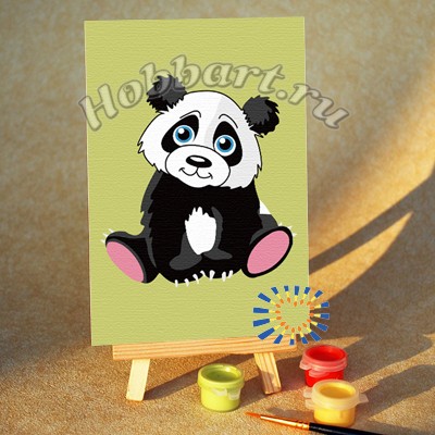 Состав набора: загрунтованный хлопковый холст с контурным рисунком (наклеен на картонную основу) размером 10х15см; водно-дисперсионные (акриловые) краски, не требующие смешивания, в герметичных тубах; пустые пластиковые баночки для выдавливания краски; наклейки с номерами для пустых баночек; одна нейлоновая кисть; деревянный мини-мольберт для готовой работы.
