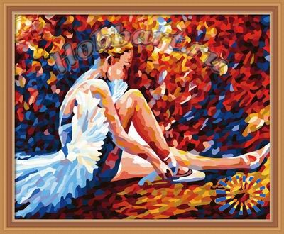 Состав набора: загрунтованный хлопковый холст с контурным рисунком закреплен на деревянном подрамнике размером 40х50см; водно-дисперсионные (акриловые) краски, не требующие смешивания, в герметичных тубах; пустые пластиковые баночки для выдавливания краски; наклейки с номерами для пустых баночек; комплект кистей; чёрно-белая инструкция (повторяет контурный рисунок на холсте); цветная инструкция (репродукция картины); инструкция с рекомендациями по использованию набора; металлические части крепления для подвешивания картины.