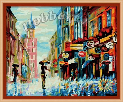 Состав набора: загрунтованный хлопковый холст с контурным рисунком закреплен на деревянном подрамнике размером 40х50см; водно-дисперсионные (акриловые) краски, не требующие смешивания, в герметичных тубах; пустые пластиковые баночки для выдавливания краски; наклейки с номерами для пустых баночек; комплект кистей; чёрно-белая инструкция (повторяет контурный рисунок на холсте); цветная инструкция (репродукция картины); инструкция с рекомендациями по использованию набора; металлические части крепления для подвешивания картины.