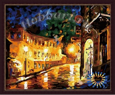 Состав набора: загрунтованный хлопковый холст с контурным рисунком закреплен на деревянном подрамнике размером 40х50см; водно-дисперсионные (акриловые) краски, не требующие смешивания, в герметичных тубах; пустые пластиковые баночки для выдавливания краски; наклейки с номерами для пустых баночек; комплект кистей; чёрно-белая инструкция (повторяет контурный рисунок на холсте); цветная инструкция (репродукция картины); инструкция с рекомендациями по использованию набора; металлические части крепления для подвешивания картины.
