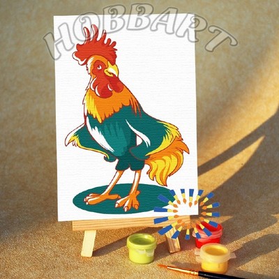 Состав набора: загрунтованный хлопковый холст с контурным рисунком (наклеен на картонную основу) размером 10х15см; водно-дисперсионные (акриловые) краски, не требующие смешивания, в герметичных тубах; пустые пластиковые баночки для выдавливания краски; наклейки с номерами для пустых баночек; одна нейлоновая кисть; деревянный мини-мольберт для готовой работы.
