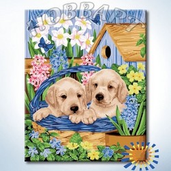 Состав набора: загрунтованный хлопковый холст с контурным рисунком закреплен на деревянном подрамнике размером 40х50см; водно-дисперсионные (акриловые) краски, не требующие смешивания, в герметичных тубах; пустые пластиковые баночки для выдавливания краски; наклейки с номерами для пустых баночек; комплект кистей; чёрно-белая инструкция (повторяет контурный рисунок на холсте); цветная инструкция (репродукция картины); инструкция с рекомендациями по использованию набора; металлические части крепления для подвешивания картины.