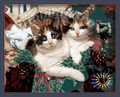 Состав набора: загрунтованный хлопковый холст с контурным рисунком закреплен на деревянном подрамнике размером 40х50см; водно-дисперсионные (акриловые) краски, не требующие смешивания, в герметичных тубах; пустые пластиковые баночки для выдавливания краски; наклейки с номерами для пустых баночек; комплект кистей; чёрно-белая инструкция (повторяет контурный рисунок на холсте); цветная инструкция (репродукция картины); инструкция с рекомендациями по использованию набора; металлические части крепления для подвешивания картины.