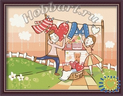 Состав набора: натянутый на подрамник загрунтованный холст с нанесенным контурным рисунком, комплект акриловых красок в герметичных тюбиках, пустые платстиковые баночки с крышкой для краски, наклейки для нумерации пластиковых баночек, нейлоновые кисти, крепление для подвешивания картины, черно-белый контрольный лист, цветной контрольный лист, инструкция по использованию набора на русском языке