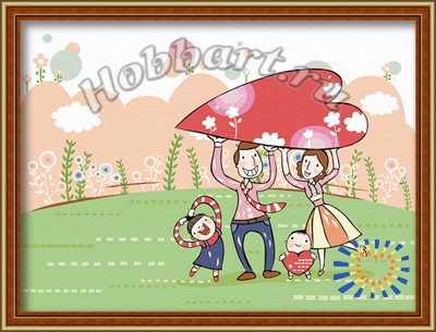 Состав набора: натянутый на подрамник загрунтованный холст с нанесенным контурным рисунком, комплект акриловых красок в герметичных тюбиках, пустые платстиковые баночки с крышкой для краски, наклейки для нумерации пластиковых баночек, нейлоновые кисти, крепление для подвешивания картины, черно-белый контрольный лист, цветной контрольный лист, инструкция по использованию набора на русском языке