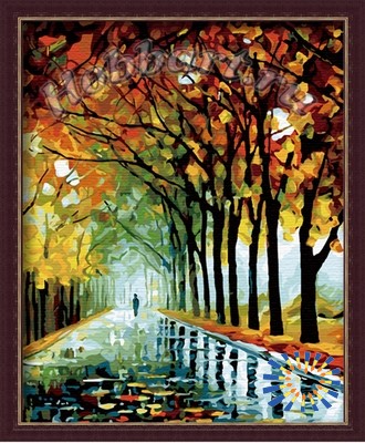 Состав набора: загрунтованный хлопковый холст с контурным рисунком закреплен на деревянном подрамнике размером 40х50см; водно-дисперсионные (акриловые) краски, не требующие смешивания, в герметичных тубах; пустые пластиковые баночки для выдавливания краски; наклейки с номерами для пустых баночек; комплект кистей; чёрно-белая инструкция (повторяет контурный рисунок на холсте); цветная инструкция (репродукция картины); инструкция с рекомендациями по использованию набора; металлические части крепления для подвешивания картины.
