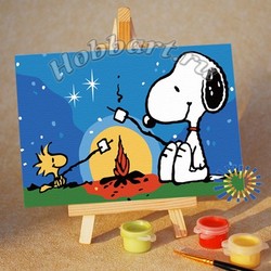 Состав набора: загрунтованный хлопковый холст с контурным рисунком (наклеен на картонную основу) размером 10х15см; водно-дисперсионные (акриловые) краски, не требующие смешивания, в герметичных тубах; пустые пластиковые баночки для выдавливания краски; наклейки с номерами для пустых баночек; одна нейлоновая кисть; деревянный мини-мольберт для готовой работы.
