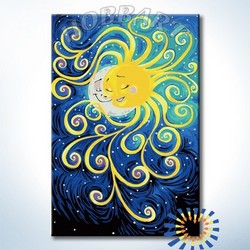 Состав набора: загрунтованный хлопковый холст с контурным рисунком закреплен на деревянном подрамнике размером 20х30см; водно-дисперсионные (акриловые) краски, не требующие смешивания, в герметичных тубах; пустые пластиковые баночки для выдавливания краски; наклейки с номерами для пустых баночек; комплект кистей; чёрно-белая инструкция (повторяет контурный рисунок на холсте); цветная инструкция (репродукция картины); инструкция с рекомендациями по использованию набора; металлические части крепления для подвешивания картины.