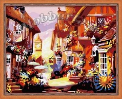 Состав набора: загрунтованный хлопковый холст с контурным рисунком закреплен на деревянном подрамнике размером 40х50см; водно-дисперсионные (акриловые) краски, не требующие смешивания, в герметичных тубах; пустые пластиковые баночки для выдавливания краски; наклейки с номерами для пустых баночек; комплект кистей; чёрно-белая инструкция (повторяет контурный рисунок на холсте); цветная инструкция (репродукция картины); инструкция с рекомендациями по использованию набора; металлические части крепления для подвешивания картины.