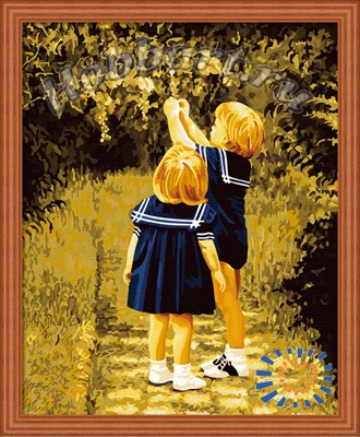 Состав набора: загрунтованный хлопковый холст с контурным рисунком закреплен на деревянном подрамнике размером 40х50см; водно-дисперсионные (акриловые) краски, не требующие смешивания, в герметичных тубах; пустые пластиковые баночки для выдавливания краски; наклейки с номерами для пустых баночек; комплект кистей; чёрно-белая инструкция (повторяет контурный рисунок на холсте); цветная инструкция (репродукция картины); инструкция с рекомендациями по использованию набора; металлические части крепления для подвешивания картины.