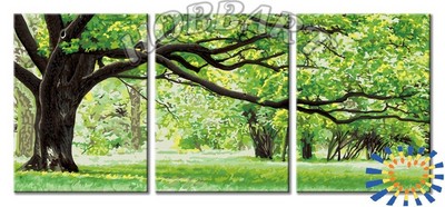 Состав набора: три загрунтованных хлопковых холста с цветным контурным рисунком закрепленые на деревянном подрамнике; водно-дисперсионные (акриловые) краски, не требующие смешивания, в герметичных тубах; комплект кистей; чёрно-белая инструкция (повторяет контурный рисунок на холсте); металлические части крепления для подвешивания картины.