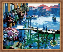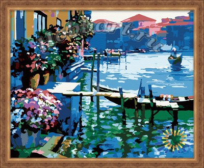 Состав набора: загрунтованный хлопковый холст с контурным рисунком закреплен на деревянном подрамнике размером 40х50см; водно-дисперсионные (акриловые) краски, не требующие смешивания, в герметичных тубах; пустые пластиковые баночки для выдавливания краски; наклейки с номерами для пустых баночек; комплект кистей; чёрно-белая инструкция (повторяет контурный рисунок на холсте); цветная инструкция (репродукция картины); инструкция с рекомендациями по использованию набора; металлические части крепления для подвешивания картины.