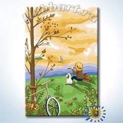 Состав набора: загрунтованный хлопковый холст с контурным рисунком закреплен на деревянном подрамнике размером 20х30см; водно-дисперсионные (акриловые) краски, не требующие смешивания, в герметичных тубах; пустые пластиковые баночки для выдавливания краски; наклейки с номерами для пустых баночек; комплект кистей; чёрно-белая инструкция (повторяет контурный рисунок на холсте); цветная инструкция (репродукция картины); инструкция с рекомендациями по использованию набора; металлические части крепления для подвешивания картины.